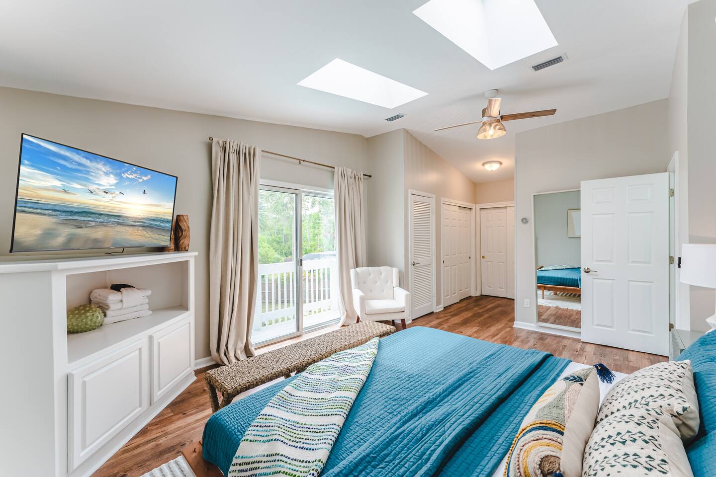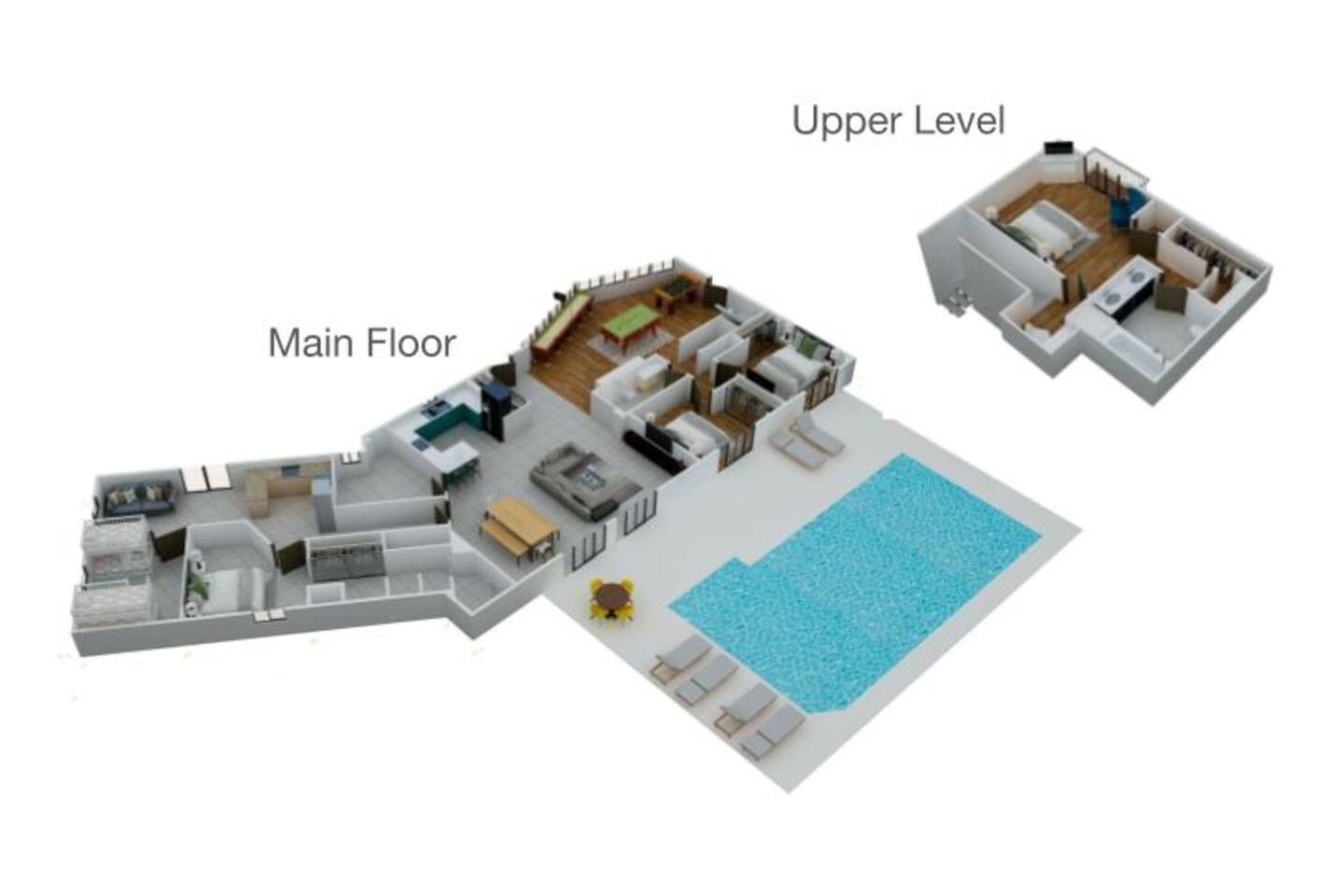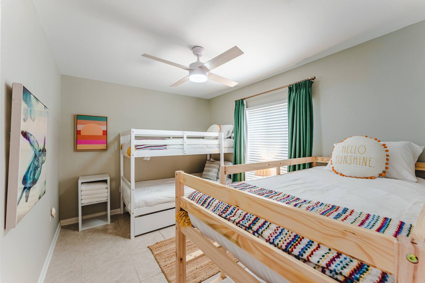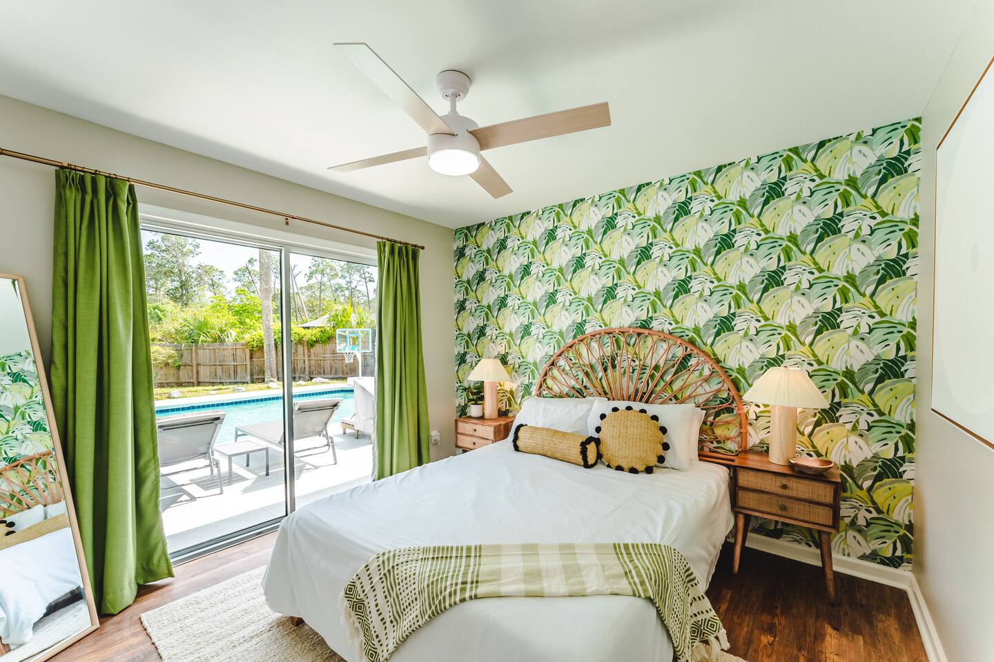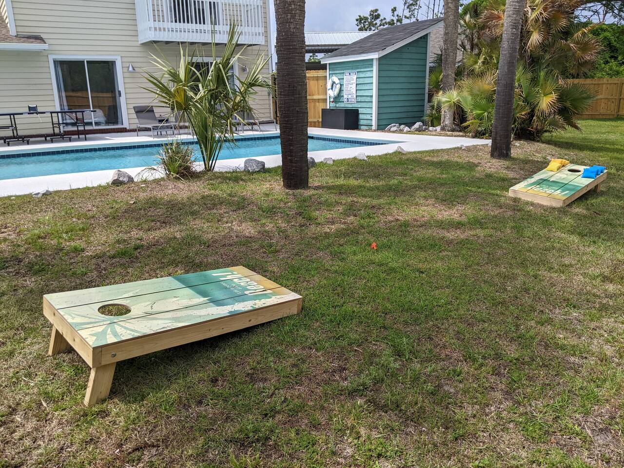 A rare forest-backed home designed for families and groups to spread out, relax, and reconnect. Two bedroom wings give everyone privacy, while the central living area flows naturally to the pool deck for perfect indoor–outdoor living. BEDROOMS (5) All bedrooms include high-end linens, blackout curtains & comfortable mattresses ✹ Primary: King, ensuite bath, 50” Roku TV, private balcony ✹ Bedroom 2: King, 43” TV, direct pool access ✹ Bedroom 3: Queen, direct pool access ✹ Bedroom 4: Queen, ensuite bath, 32” TV ✹ Kids Room: 2 bunk beds + bookshelf of kids’ books BATHROOMS (3) Bright, modern bathrooms with everything you need for longer stays. ✹ Two double vanities + tubs ✹ Shampoo/conditioner/body wash provided ✹ Hair dryers ✹ Washer/dryer KITCHEN + DINING A fully stocked kitchen made for group meals. ✹ Stainless steel appliances ✹ Dual Keurig (pods + grounds) ✹ Spices, oils & dry goods ✹ Full cooking essentials ✹ Welcome basket ✹ Rustic dining table for 9 LIVING ROOM Relax in a warm, beach-inspired space with pool views. ✹ 58" Roku smart TV + Sling TV ✹ Electric fireplace ✹ Sliding doors to pool deck ✹ Local recommendation guidebook GAME ROOM Hands-down our guests' favorite room with enough fun to keep the entire family entertained for hours! ✹ Pool table, shuffleboard, foosball ✹ Giant Connect 4 ✹ Surfboard bar + stools ✹ Board games, puzzles ✹ Vaulted ceilings + natural light ✹ Bluetooth speaker POOL DECK A standout feature with all-day sun and a forest backdrop. ✹ Heated 6’ pool ✹ Grill + outdoor dining ✹ 6 loungers + kids double lounger ✹ Ping pong ✹ Pool basketball + volleyball ✹ Outdoor shower ✹ Bluetooth speaker BACKYARD FUN ✹ Sauna ✹ Fire pit ✹ Cornhole, bocce ball, badminton ✹ Badminton OTHER AMENITIES ✹ Electric golf cart ✹ High-speed WiFi + work area w/ monitor ✹ Yoga mats ✹ Iron + ironing board ✹ Kids' high chair ✹ Snorkels + fins ✹ Beach chairs (4) + umbrella + wagon + toys ✹ Second kitchen (fridge, oven, microwave) ✹ Additional family room w/ daybed + 50” TV ✹ Nintendo Switch docking station (bring games) ✹ Screened front porch ✹ Exterior security cameras ACTIVITIES / ATTRACTIONS ✹ St Joe Beach: 0.3 miles ✹ Mexico Beach: 2 miles ✹ Panhandle Adventures Dolphin Tours: 2.7 miles ✹ Port St Joe Fishing Charters: 8.6 miles ✹ Pickleball Courts at Frank Pate Park: 8.6 miles ✹ Downtown Port St Joe: 8.7 miles ✹ Port St Joe Salt Air Farmers Market: 8.7 miles ✹ Forgotten Coast Sea Turtle Center: 9.7 miles ✹ Rockin’ M Ranch Horseback Riding: 17.6 miles ✹ Cape San Blas: 20.5 miles ✹ T.H. Stone Memorial St. Joseph Peninsula State Park: 29 miles ✹ Panama City Beach: 37.9 miles WHAT OUR GUESTS LOVE ✹ “So much to do - heated pool, outdoor games, full game room. Spotless and perfect for families.” ✹ “Two wings + big common area made it ideal for multigenerational trips.” ✹ “Walkable to the gulf, golf cart included, and the kids never got bored!” ✹ “A kid’s paradise. Best-equipped house we’ve ever stayed in.” ✹ “Private feel with the forest behind the pool - amazing!” Bring the whole crew - this home fills fast for family trips and group getaways. Reserve now!