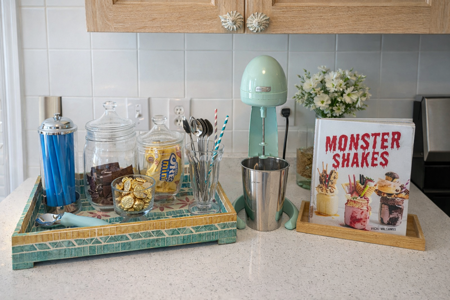 A rare forest-backed home designed for families and groups to spread out, relax, and reconnect. Two bedroom wings give everyone privacy, while the central living area flows naturally to the pool deck for perfect indoor–outdoor living. BEDROOMS (5) All bedrooms include high-end linens, blackout curtains & comfortable mattresses ✹ Primary: King, ensuite bath, 50” Roku TV, private balcony ✹ Bedroom 2: King, 43” TV, direct pool access ✹ Bedroom 3: Queen, direct pool access ✹ Bedroom 4: Queen, ensuite bath, 32” TV ✹ Kids Room: 2 bunk beds + bookshelf of kids’ books BATHROOMS (3) Bright, modern bathrooms with everything you need for longer stays. ✹ Two double vanities + tubs ✹ Shampoo/conditioner/body wash provided ✹ Hair dryers ✹ Washer/dryer KITCHEN + DINING A fully stocked kitchen made for group meals. ✹ Stainless steel appliances ✹ Dual Keurig (pods + grounds) ✹ Spices, oils & dry goods ✹ Full cooking essentials ✹ Welcome basket ✹ Rustic dining table for 9 LIVING ROOM Relax in a warm, beach-inspired space with pool views. ✹ 58" Roku smart TV + Sling TV ✹ Electric fireplace ✹ Sliding doors to pool deck ✹ Local recommendation guidebook GAME ROOM Hands-down our guests' favorite room with enough fun to keep the entire family entertained for hours! ✹ Pool table, shuffleboard, foosball ✹ Giant Connect 4 ✹ Surfboard bar + stools ✹ Board games, puzzles ✹ Vaulted ceilings + natural light ✹ Bluetooth speaker POOL DECK A standout feature with all-day sun and a forest backdrop. ✹ Heated 6’ pool ✹ Grill + outdoor dining ✹ 6 loungers ✹ Ping pong ✹ Pool basketball + volleyball ✹ Outdoor shower ✹ Bluetooth speaker BACKYARD FUN ✹ Hot tub ✹ Tiki bar ✹ Sauna ✹ Fire pit ✹ Cornhole, bocce ball, badminton OTHER AMENITIES ✹ Electric golf cart ✹ High-speed WiFi + work area w/ monitor ✹ Yoga mats ✹ Iron + ironing board ✹ Kids' high chair ✹ Beach chairs (4) + umbrella + wagon + toys ✹ Second kitchen (fridge, oven, microwave) ✹ Additional family room w/ daybed + 50” TV ✹ Nintendo Switch docking station (bring console) ✹ Screened front porch ✹ Exterior security cameras ACTIVITIES / ATTRACTIONS ✹ St Joe Beach: 0.3 miles ✹ Mexico Beach: 2 miles ✹ Panhandle Adventures Dolphin Tours: 2.7 miles ✹ Port St Joe Fishing Charters: 8.6 miles ✹ Pickleball Courts at Frank Pate Park: 8.6 miles ✹ Downtown Port St Joe: 8.7 miles ✹ Port St Joe Salt Air Farmers Market: 8.7 miles ✹ Forgotten Coast Sea Turtle Center: 9.7 miles ✹ Rockin’ M Ranch Horseback Riding: 17.6 miles ✹ Cape San Blas: 20.5 miles ✹ T.H. Stone Memorial St. Joseph Peninsula State Park: 29 miles ✹ Panama City Beach: 37.9 miles WHAT OUR GUESTS LOVE ✹ “So much to do - heated pool, outdoor games, full game room. Spotless and perfect for families.” ✹ “Two wings + big common area made it ideal for multigenerational trips.” ✹ “Walkable to the gulf, golf cart included, and the kids never got bored!” ✹ “A kid’s paradise. Best-equipped house we’ve ever stayed in.” ✹ “Private feel with the forest behind the pool - amazing!” Bring the whole crew - this home fills fast for family trips and group getaways. Reserve now!
