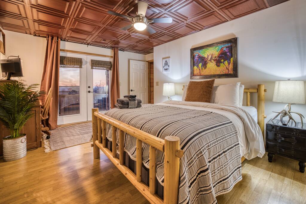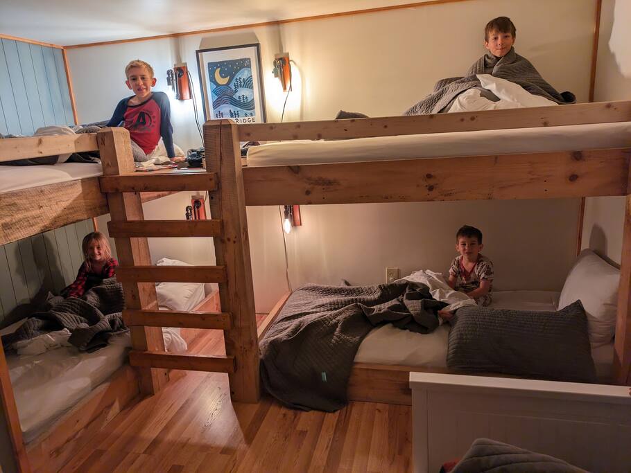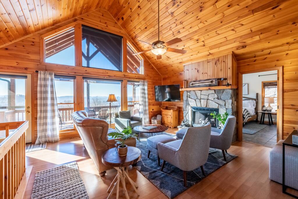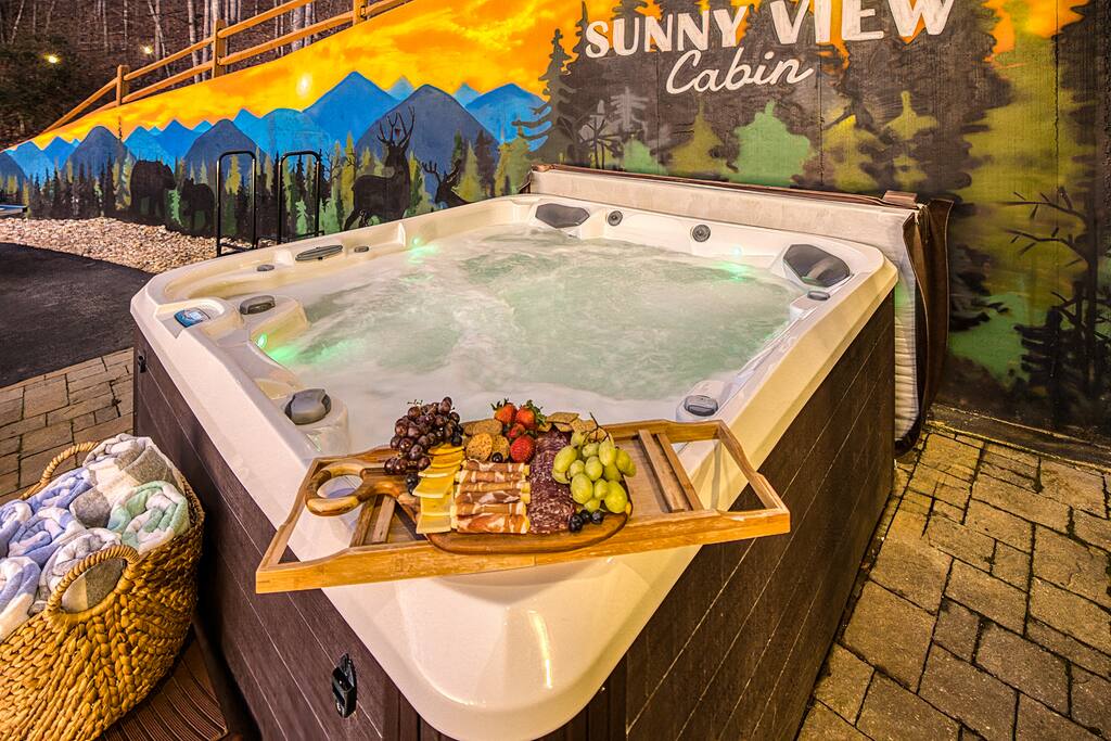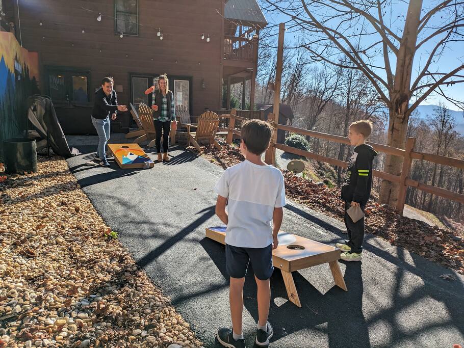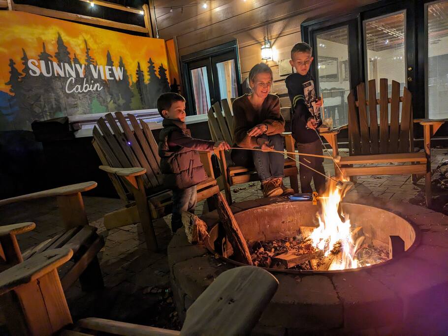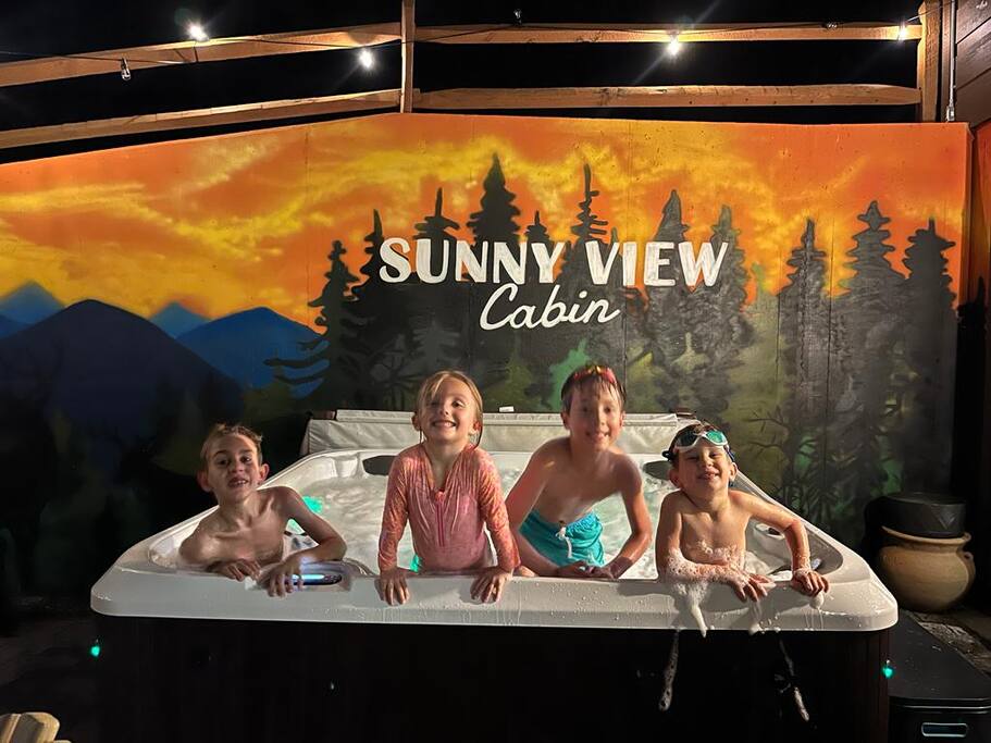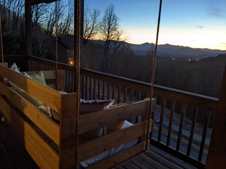 Follow us on social media and find the best rates at sunnyviewcabinga BEDROOMS 4 bedrooms all equipped with high-end linens, modern furnishings, and comfortable mattresses to ensure that well-deserved rest and relaxation. ✹ Master bedroom: king bed, private ensuite bath, 50” Roku smart TV, spacious closet, direct access to right upper balcony with 2 rocking chairs, panoramic mountain view ✹ Upper bedroom: king bed, ensuite bath, 50” Roku smart TV, large closet, direct access to left upper balcony with 2 rocking chairs, panoramic mountain view ✹ Lower bedroom: queen bed, ensuite bath, 42” Roku smart TV, closet, direct access to left lower balcony with 2 adirondack chairs, panoramic mountain view ✹ Kids bedroom: 2 custom-built bunk beds, a daybed with trundle, ensuite bath, small closet, bookcase with a variety of kids books BATHROOMS 3 full bathrooms all with a double vanity and a tub for the little ones. ✹ High-quality linens ✹ Quality shampoo, conditioner, and body wash ✹ Hair dryers ✹ Washer + dryer KITCHEN + DINING This cozy kitchen is fully stocked with everything you’ll need to cook delicious gourmet meals. ✹ Full-size fridge/freezer, 4-burner stove + oven, microwave ✹ Keurig dual coffee machine with both K-cup pods and ground coffee to brew a cup and a carafe of your favorite varieties ✹ Full set of kitchen cooking essentials ✹ Fully-stocked pantry with salt, pepper, spices and dry goods ✹ Welcome basket with s'mores kit and fire starter ✹ Modern rustic 10-person dining table LIVING ROOM Enjoy the mountain vibes in this warm living room with spectacular mountain views. ✹ 58" smart TV ✹ Dish Network with 190 channels ✹ Natural stone gas fireplace ✹ Physical guidebook with local recommendations ✹ Modern mountain decor GAME ROOM Hands-down our guests' favorite room with enough fun to keep the entire family entertained for hours! ✹ Pool table ✹ Shuffleboard ✹ Pac-Man ✹ Live-edge bar and barstool seating for spectators ✹ Giant Jenga ✹ Giant Connect 4 ✹ 65" smart TV ✹ Nintendo Switch docking station + 4 controllers ✹ Puzzles ✹ Board games DECKS Savor THE best panoramic mountain sunsets from the two enormous, west-facing decks. ✹ Gas BBQ grill ✹ 12-person outdoor dining table ✹ Rocking chairs ✹ Cafe string lights ✹ Bed swing ✹ Adirondack chairs ✹ Swinging egg chair ✹ Live-edge bar & stools OUTDOOR FUN ZONE Enjoy the finest outdoor living the Blue Ridge mountains have to offer. ✹ 7-person hot tub w/ lights and Bluetooth speakers ✹ Fire pit + firewood provided ✹ Cornhole ✹ Foosball ✹ Ping pong ✹ Kan Jam OTHER AMENITIES ✹ High-speed WiFi throughout the home ✹ Designated work area w/ second monitor and lamp ✹ Yoga mats ✹ Adjustable dumbbells ✹ Iron and ironing board ✹ Kids high chair ✹ Toddler bed frame + mattress ✹ Rolling cooler ✹ Exterior cameras for cabin security ACTIVITIES / ATTRACTIONS ✹ The Spa at Blueberry Hill: 2.9 miles ✹ Grandaddy Mimm's Distilling Co: 3.1 miles ✹ Meeks Park & Trails: 3.5 miles ✹ Butternut Creek Golf Course: 3.6 miles ✹ Trackrock Stables: 8.0 miles ✹ Vogel State Park: 9.9 miles ✹ Old Union Golf Course: 9.9 miles ✹ Living Water Winery & Vineyard: 10.2 miles ✹ Odom Springs Vineyard: 11.4 miles ✹ Nottely Lake: 11.5 miles ✹ Helton Creek Falls: 13 miles ✹ Blood Mountain/Appalachian Trail: 13 miles ✹ Crane Creek Winery: 15.1 miles ✹ Brasstown Bald: 15.7 miles ✹ DeSoto Falls: 16 miles ✹ Lake Chatuge Beach: 17.8 miles ✹ Blue Ridge: 25.6 miles ✹ Helen: 25.7 miles ✹ Harrah's Casino: 27.0 miles WHAT OUR GUESTS LOVE ✹ The home is lovely, warm and inviting......Tim and Katie have thought of everything to make their home comfortable and the perfect place to stay in the Georgia mountains. The view is the icing on the cake........ what a beautiful view they have from just about every room! ✹ The house was exactly as described and Tim and Katie provided so much helpful information to make it a super easy and stress-free stay! ✹ The house was amazing with small thoughtful touches. My nieces loved the downstairs where there are so many games and things to keep the kids attention. I can’t rave enough about this place! ✹ If I could give a 6 star rating for Tim & Katie regarding their timely & prompt communication I would definitely do so! AWESOME hosts & lovely home!! ✹ This place is incredible and a stunning location. Last house on the block on a beautiful mountain side looking at sunset. ✹ We enjoyed sitting on the porch in the morning watching deer and groundhogs pass through the yard. There were plenty of activities and room for everyone. When we arrived there was a complimentary smore's basket which we enjoyed using at the fire pit. There was also plenty of firewood available. This cabin was well stocked and clean. It is only a 5 to 10 minute drive into town which has cute little shops and located close to several hiking trails. ✹ Fabulous home with beautiful western-facing views of the sunset in the mountains. Loved the mural, fire pit and amenities! The basement setup was amazing with lots of entertainment for the big and little kids! Other Things to Note ✹ Private owner who truly cares about your stay ✹ Clean, well-maintained cabin ✹ Easy self-check-in via the keypad on the front door ✹ Well-paved roads the entire drive to the cabin ✹ Free private parking for up to 4 vehicles on the driveway