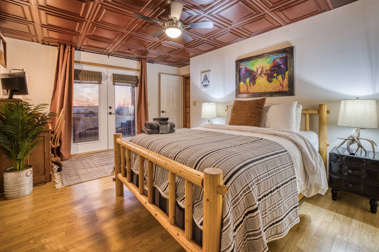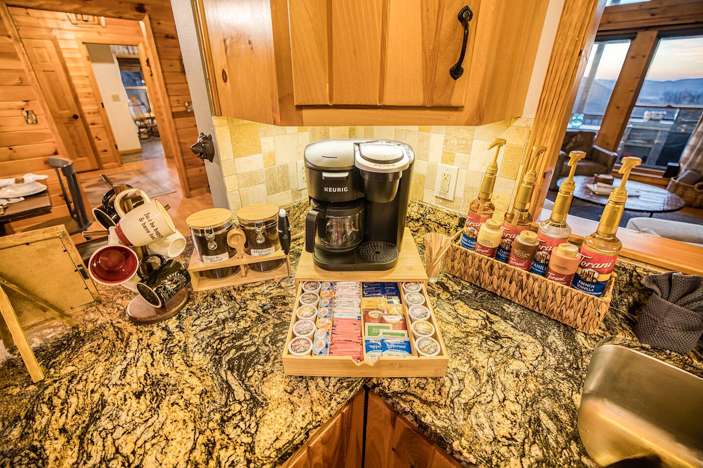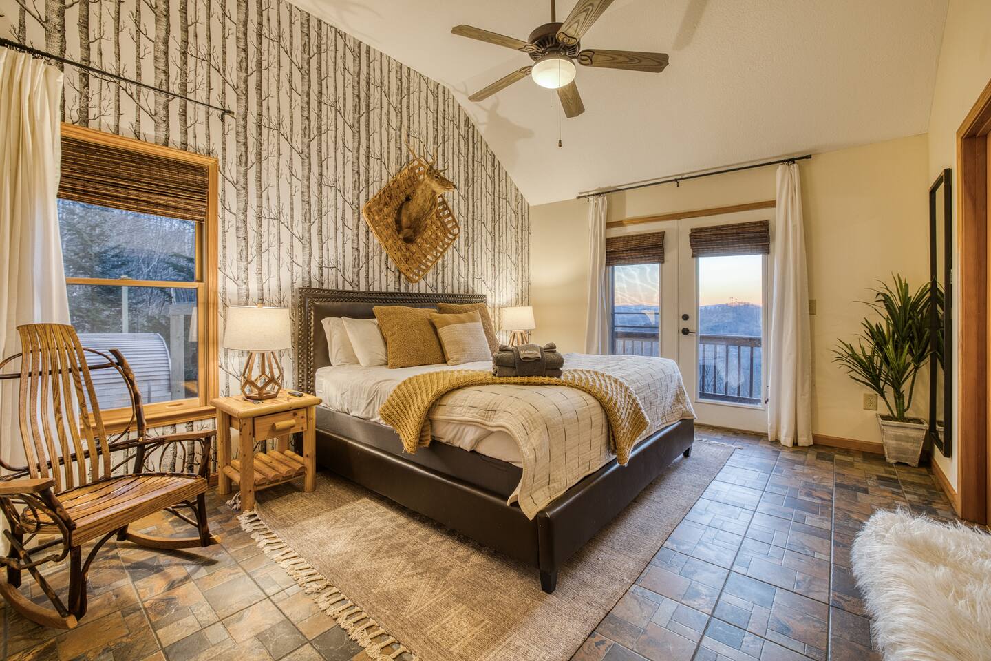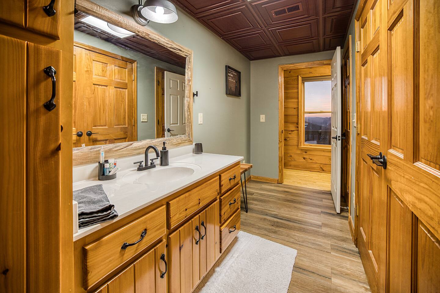 Designed for unforgettable family fun, the home features a 7-person hot tub, fire pit with firewood provided, and a fully loaded game room with pool, shuffleboard, foosball, ping pong, Pac-Man, Nintendo Switch, giant yard games, and board games for every age. BEDROOMS Each of the four beautifully furnished bedrooms includes high-end linens, plush mattresses, and modern comforts to ensure deep relaxation. ✹ Primary: King bed, ensuite bath, 50” Roku TV, private balcony with rocking chairs & sweeping mountain views ✹ Upper King: Ensuite bath, 50” Roku TV, balcony with panoramic views ✹ Lower Queen: Ensuite bath, 42” TV, patio access with Adirondack chairs ✹ Kids Room: Two custom bunk beds + daybed w/ trundle, books, and cozy play space BATHROOMS Three full bathrooms feature double vanities, bathtubs for little ones, soft linens, hair dryers, and shampoo/conditioner/body wash provided. Washer + dryer included. KITCHEN + DINING Cook, gather, and enjoy! The fully stocked kitchen includes a Keurig dual-brew system, cooking essentials, spices, oils, dry goods, and a welcome basket with s’mores & fire starter provided. Share meals at the modern rustic 10-person dining table. LIVING ROOM Relax in front of the natural stone gas fireplace, enjoy the 58” smart TV with 190 Dish Network channels, and take in the spectacular mountain views from the oversized windows. A physical guidebook highlights our favorite local hikes, waterfalls, wineries, and adventures! GAME ROOM The ultimate family hangout! Unwind, compete, or cheer from the live-edge bar while enjoying: Pool · Shuffleboard · Pac-Man · 65” TV · Nintendo Switch dock + controllers · Giant Jenga · Giant Connect 4 · Puzzles · Board games galore! DECKS Savor the best west-facing sunset views in the area from two expansive decks with a 12-person dining table, rocking chairs, Adirondacks, a bed swing, egg chair, café string lights, and live-edge bar seating. Grill your favorites on the gas BBQ! OUTDOOR FUN ZONE Enjoy the finest outdoor living the Blue Ridge mountains offer! ✹ 7-person hot tub (lights + Bluetooth speakers) ✹ Fire pit with firewood provided ✹ Cornhole · Foosball · Ping Pong · Kan Jam OTHER AMENITIES ✹ High-speed WiFi throughout the home ✹ Designated work area w/ second monitor and lamp ✹ Yoga mats ✹ Adjustable dumbbells ✹ Iron and ironing board ✹ Kids high chair ✹ Toddler bed frame + mattress ✹ Rolling cooler ✹ Exterior cameras for cabin security ACTIVITIES / ATTRACTIONS ✹ The Spa at Blueberry Hill: 2.9 miles ✹ Grandaddy Mimm's Distilling Co: 3.1 miles ✹ Meeks Park & Trails: 3.5 miles ✹ Butternut Creek Golf Course: 3.6 miles ✹ Trackrock Stables: 8.0 miles ✹ Vogel State Park: 9.9 miles ✹ Old Union Golf Course: 9.9 miles ✹ Living Water Winery & Vineyard: 10.2 miles ✹ Odom Springs Vineyard: 11.4 miles ✹ Nottely Lake: 11.5 miles ✹ Helton Creek Falls: 13 miles ✹ Blood Mountain/Appalachian Trail: 13 miles ✹ Crane Creek Winery: 15.1 miles ✹ Brasstown Bald: 15.7 miles ✹ DeSoto Falls: 16 miles ✹ Lake Chatuge Beach: 17.8 miles ✹ Blue Ridge: 25.6 miles ✹ Helen: 25.7 miles ✹ Harrah's Casino: 27.0 miles WHAT OUR GUESTS LOVE ✹ The home is lovely, warm and inviting......Tim and Katie have thought of everything to make their home comfortable and the perfect place to stay in the Georgia mountains. The view is the icing on the cake........ what a beautiful view they have from just about every room! ✹ The house was amazing with small thoughtful touches. My nieces loved the downstairs where there are so many games and things to keep the kids attention. I can’t rave enough about this place! ✹ If I could give a 6 star rating for Tim & Katie regarding their timely & prompt communication I would definitely do so! AWESOME hosts & lovely home!! ✹ This place is incredible and a stunning location. Last house on the block on a beautiful mountain side looking at sunset. ✹ Fabulous home with beautiful western-facing views of the sunset in the mountains. Loved the mural, fire pit and amenities! The basement setup was amazing with lots of entertainment for the big and little kids! Book your mountain getaway today - peak-season dates fill fast!