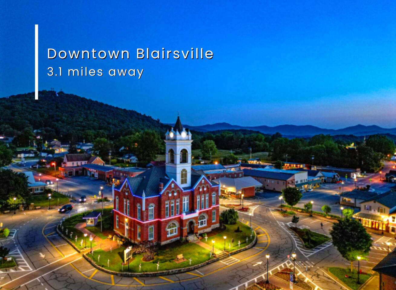 Located at the end of the street in a nice residential neighborhood on the side of the mountain. Close proximity to numerous lakes, hiking trails, parks, wineries, golf courses, and only 5 minutes from downtown Blairsville. Here are some of our favorite activities and nearby attractions: ✹ The Spa at Blueberry Hill: 2.9 miles ✹ Grandaddy Mimm's Distilling Co: 3.1 miles ✹ Meeks Park & Trails: 3.5 miles ✹ Butternut Creek Golf Course: 3.6 miles ✹ Trackrock Stables: 8.0 miles ✹ Vogel State Park: 9.9 miles ✹ Old Union Golf Course: 9.9 miles ✹ Living Water Winery & Vineyard: 10.2 miles ✹ Odom Springs Vineyard: 11.4 miles ✹ Nottely Lake: 11.5 miles ✹ Helton Creek Falls: 13 miles ✹ Blood Mountain/Appalachian Trail: 13 miles ✹ Crane Creek Winery: 15.1 miles ✹ Brasstown Bald: 15.7 miles ✹ DeSoto Falls: 16 miles ✹ Lake Chatuge Beach: 17.8 miles ✹ Blue Ridge: 25.6 miles ✹ Helen: 25.7 miles ✹ Harrah's Casino: 27.0 miles