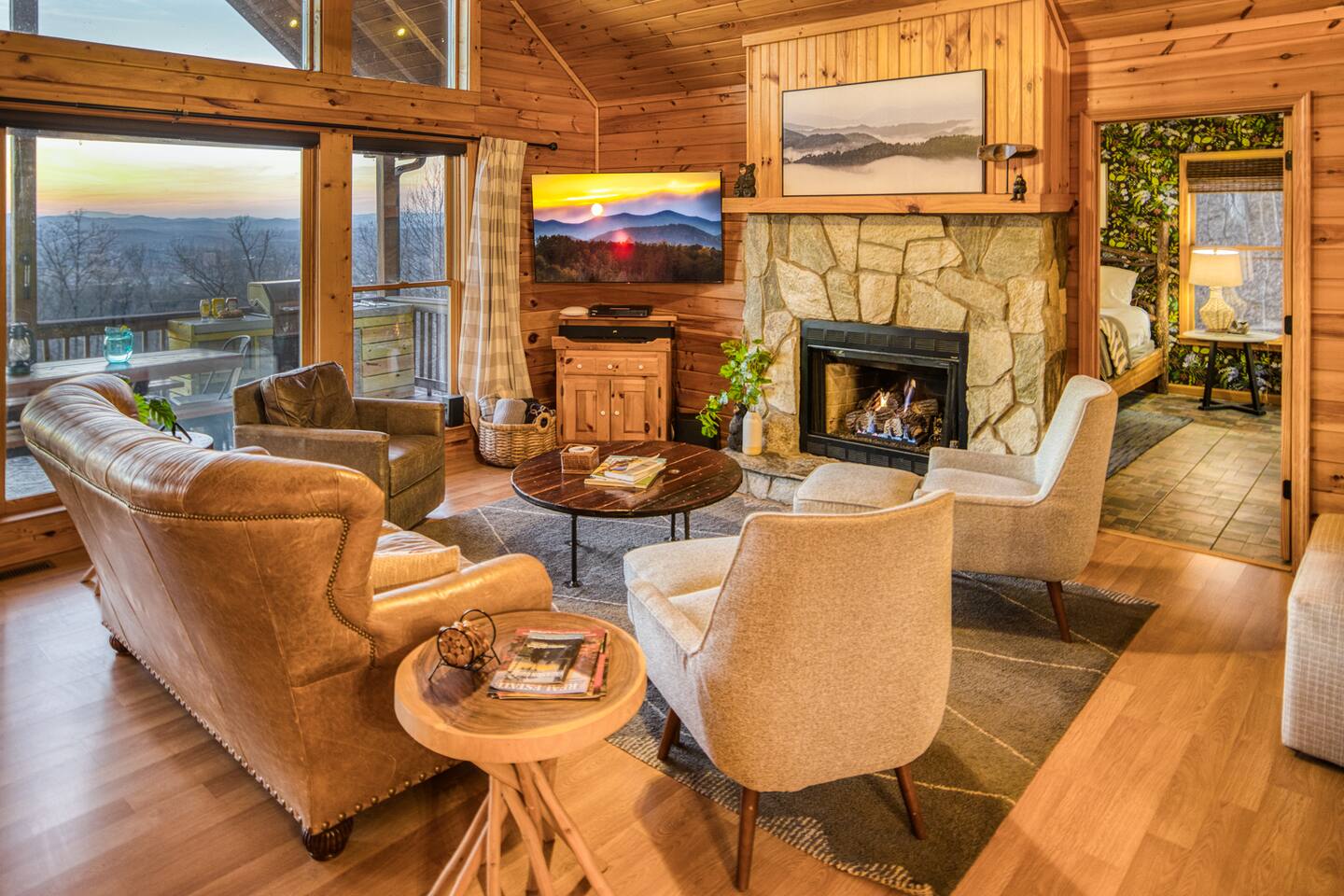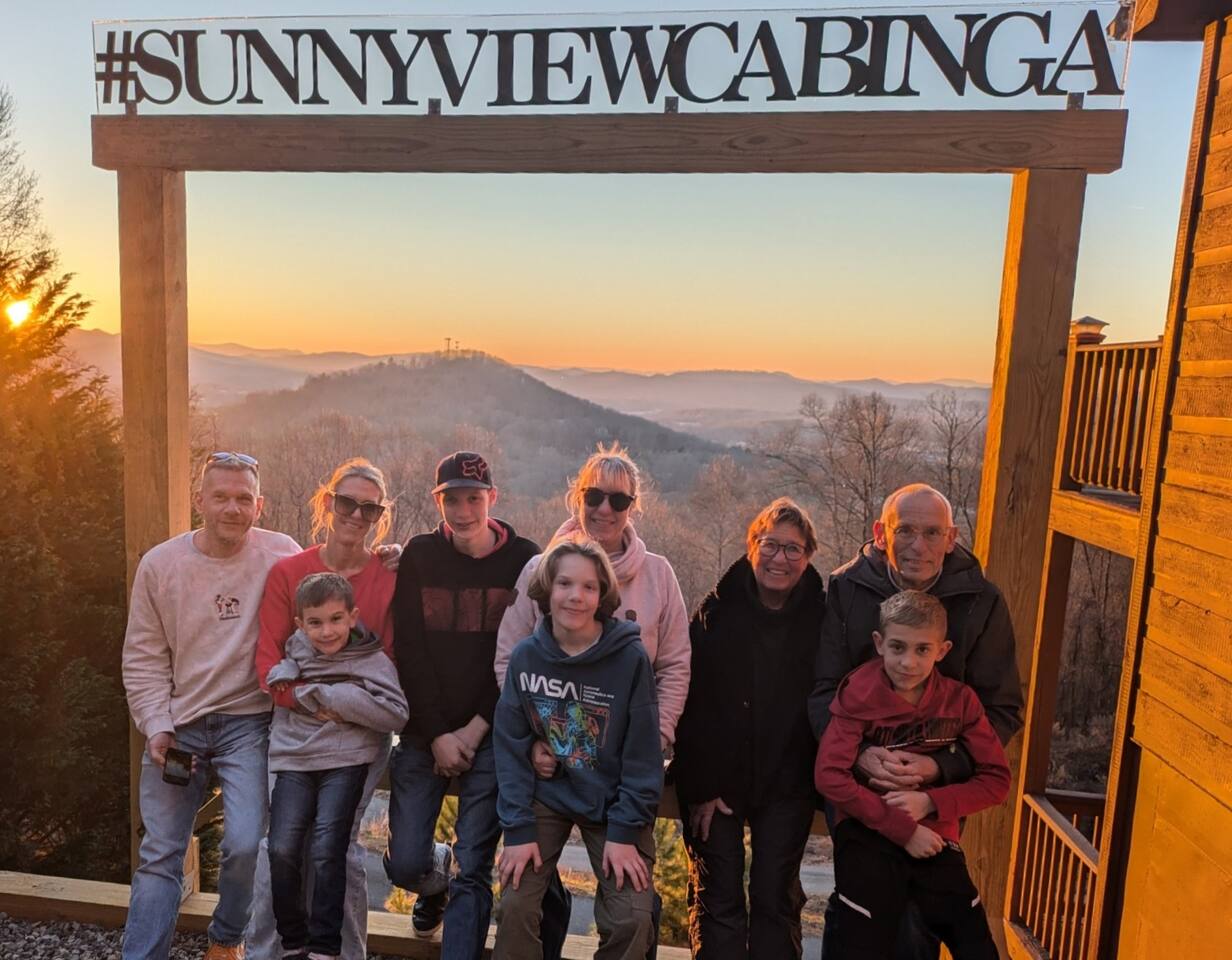 Escape to your private mountain retreat with breathtaking sunset views from nearly every room! Perfect for large families, multi-generational groups, and dog owners, this luxurious 4bd/3ba cabin sleeps 12 and sits at the quiet end of a well-paved road offering peaceful privacy while still being just 5 minutes from downtown Blairsville.