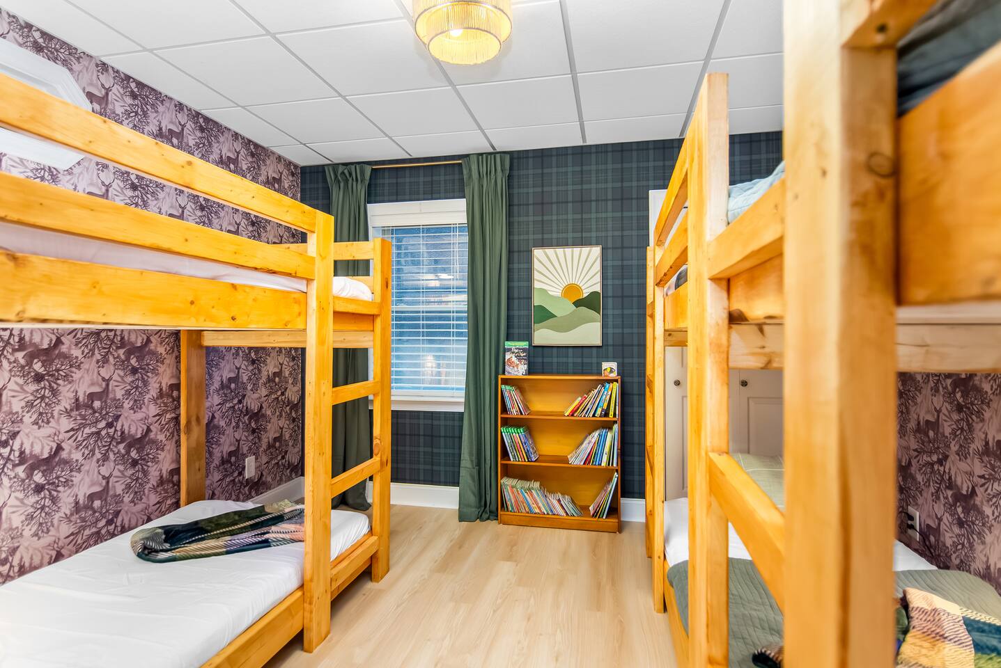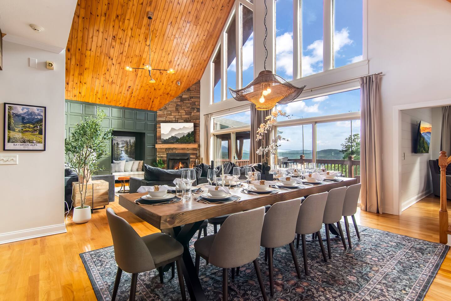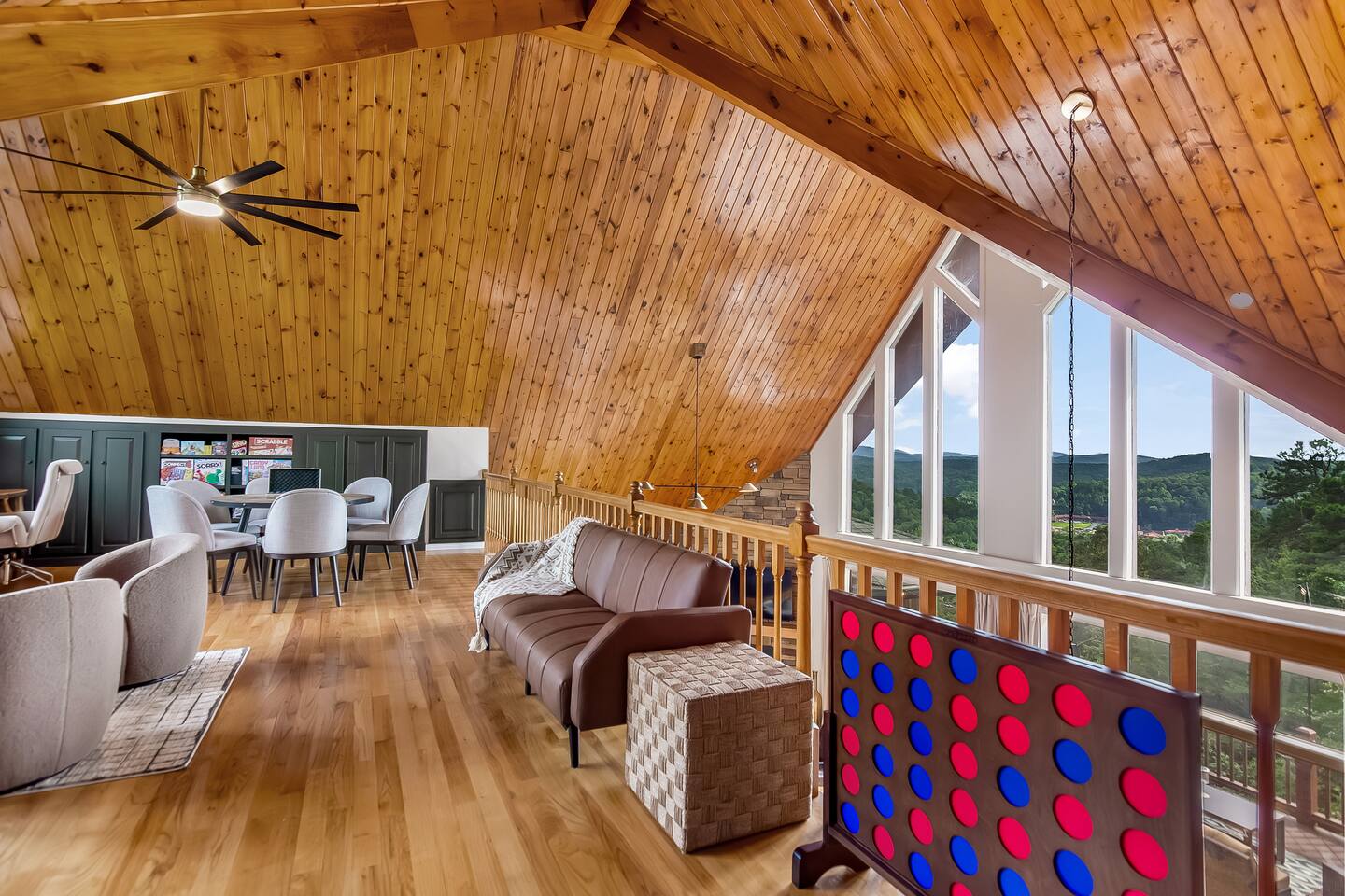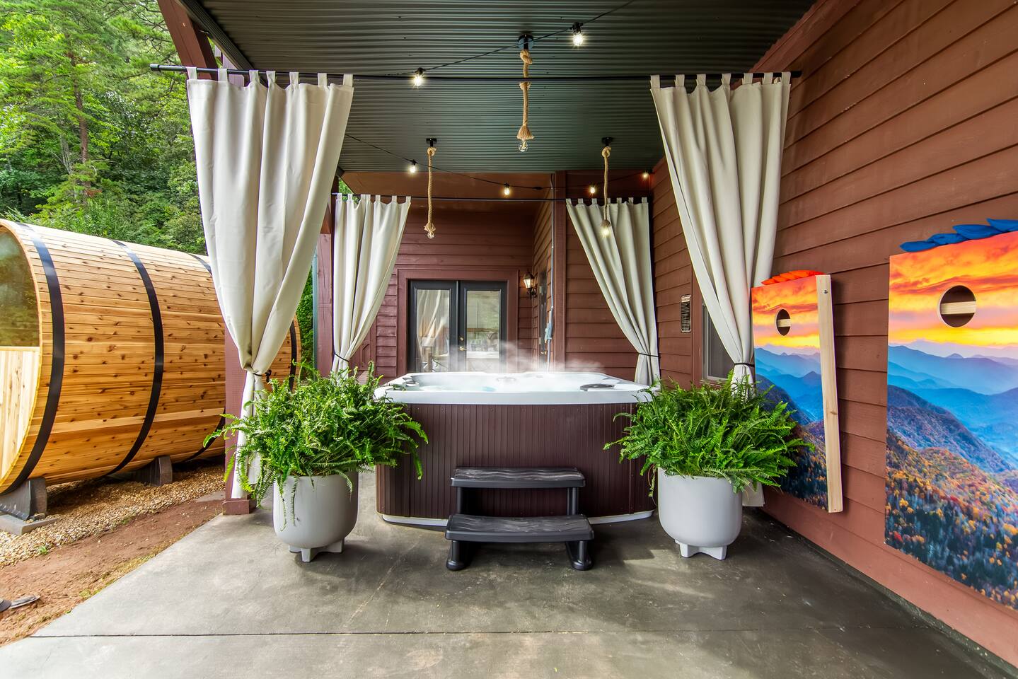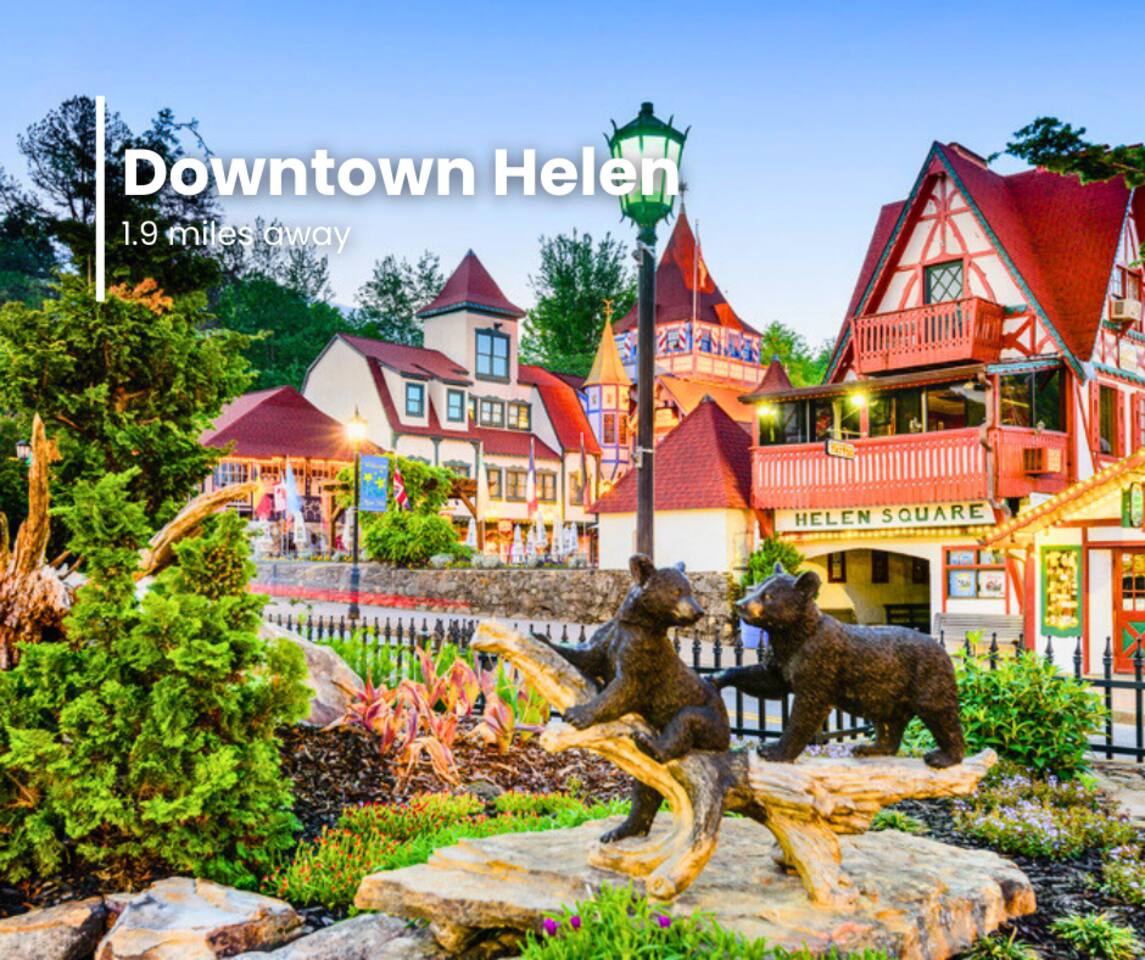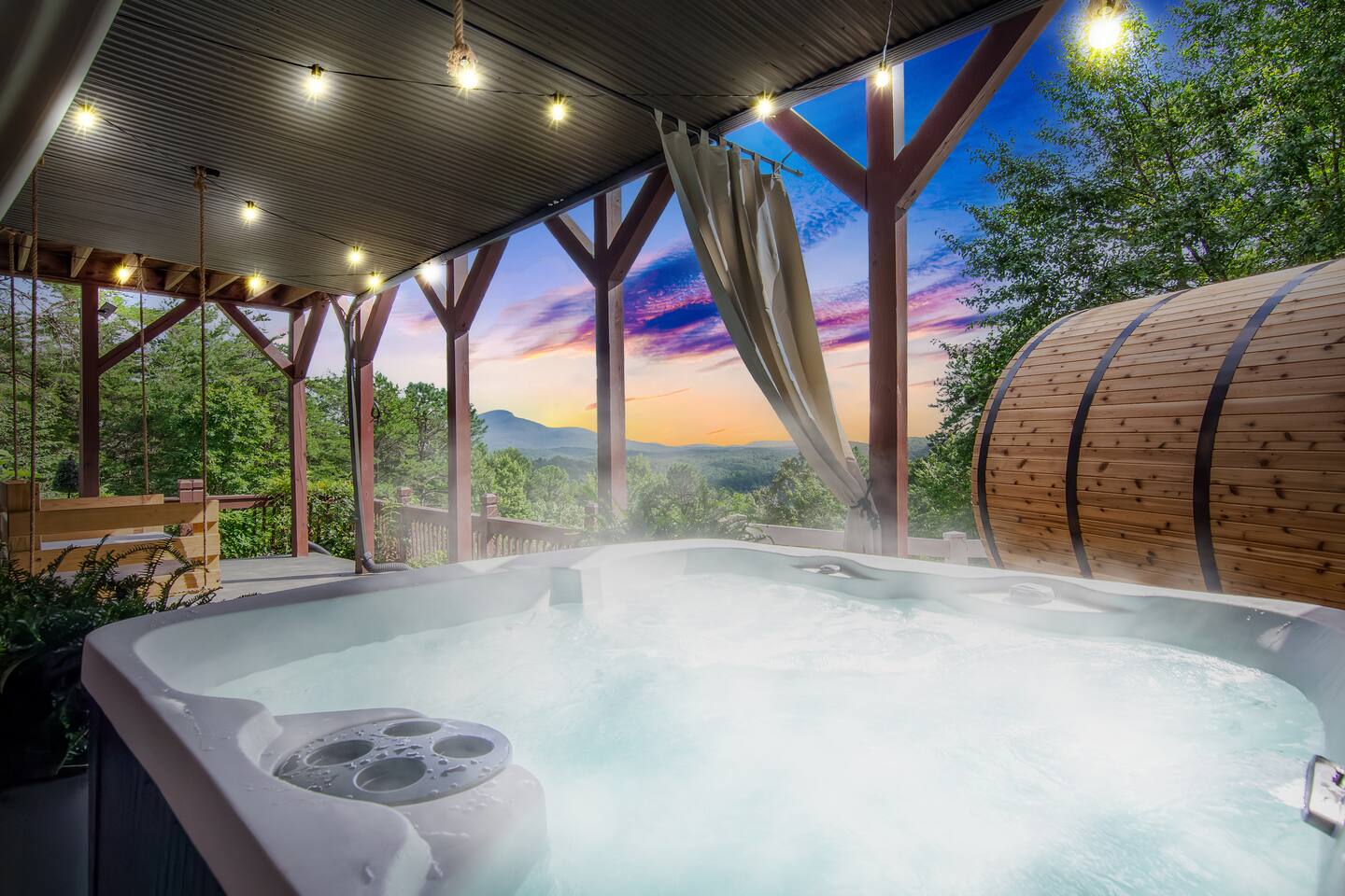 OUTDOOR FUN ZONE Enjoy the finest outdoor living the Blue Ridge Mountains have to offer. ✹ 6-person barrel sauna with panoramic mountain views ✹ 6-person hot tub with programmable LED lights ✹ Premier wooden kids' playground with two slides, a climbing wall, swings, and a lookout tower ✹ Fire pit with 5 Adirondack chairs (firewood provided) ✹ Bed swing ✹ Cornhole ✹ Bocce ball ✹ Badminton ✹ Pickleball court GAME ROOM Hands-down our favorite room with enough fun to keep the entire family entertained for hours! ✹ Pool table ✹ Foosball ✹ Air hockey ✹ Skee ball ✹ Shuffleboard ✹ Two LED-lighting dartboards and scorecard ✹ Street Fighter arcade game ✹ 14-foot live-edge bar and barstool seating for spectators ✹ Two 58" smart TVs MOVIE THEATER ✹ 100" smart TV with surround sound system ✹ Six leather reclining movie theater chairs with cupholders ✹ Two Big Joe bean bag seats ✹ Vintage popcorn machine KIDS GAMING ROOM ✹ Pac-Man arcade game ✹ Golden Tee arcade game ✹ 65" smart TV ✹ Nintendo Switch docking station + 4 controllers ✹ Mitchell Gold Velvet queen-size sleeper sofa ✹ Natural stone gas fireplace LIVING ROOM Enjoy the mountain vibes in this warm living room with views of the mountains and city of Helen. ✹ 65" smart TV ✹ Sling TV with 190 channels ✹ Natural stone gas fireplace ✹ Physical guidebook with local recommendations ✹ Expansive vaulted wood ceiling ✹ Modern mountain decor KITCHEN + DINING This cozy kitchen is fully stocked with everything you’ll need to cook delicious gourmet meals. ✹ Full-size fridge/freezer, dishwasher, 4-burner stove, oven, microwave ✹ Keurig dual coffee machine with both K-cup pods and ground coffee to brew a cup and a carafe of your favorite varieties ✹ Full set of kitchen cooking essentials ✹ Fully-stocked pantry with salt, pepper, spices, and dry goods ✹ Welcome basket with s'mores kit and fire starter ✹ Modern rustic 12-person dining table BEDROOMS 7 bedrooms all equipped with high-end linens, modern furnishings, and comfortable mattresses to ensure that well-deserved rest and relaxation. ✹ Upstairs bedroom 1: king bed, 43” Roku smart TV, private balcony, incredible views of Mt Jonah and the city of Helen ✹ Upstairs bedroom 2: full-over-full custom-built bunk bed, 50” Roku smart TV, two closets, kids' gaming table, leather convertible sofa ✹ Main level bedroom 1: king bed, 50” Roku smart TV, large closet ✹ Main level bedroom 2: king bed, ensuite bath, 50” Roku smart TV, spacious closet ✹ Main level bedroom 3: king bed, 58” Roku smart TV, panormamic mountain view ✹ Lower level bedroom 1: king bed, 43” Roku smart TV, mountain view ✹ Lower level bedroom 2: 3 custom-built bunk beds, small closet, bookcase with a variety of kids books BATHROOMS 4 full bathrooms all with a tub for the little ones. ✹ High-quality linens ✹ Quality shampoo, conditioner, and body wash ✹ Double vanity in 3 of 4 ✹ Two include a jacuzzi tub with bath bombs and epsom salts ✹ Bidet ✹ Hair dryers KITCHENETTE ✹ Full-size fridge/freezer, 4-burner stove, dishwasher ✹ Stocked with dinnerware and glassware LOFT ✹ Designated work area with desk, chair, and second monitor ✹ Kids' gaming/puzzle table ✹ Large assortment of board games and puzzles ✹ Giant Connect 4 ✹ Poker table and chip set ✹ Queen-size velvet sleeper sofa bed ✹ Soaring vaulted wood ceiling with panoramic mountain views and the city of Helen WRAP-AROUND DECK Savor THE best panoramic views of the mountains and the city of Helen. ✹ Outdoor couch, chairs, and coffee table ✹ Cafe string lights ✹ Gas Blackstone BBQ grill ✹ Cozy outdoor gathering space with an 8-person dining table and curtains ✹ Three fans ✹ Yoga mats OTHER AMENITIES ✹ Access to Unicoi State Park hiking trails ✹ High-speed WiFi throughout the home ✹ Laundry room with washer + dryer ✹ Iron and ironing board ✹ Two kids' high chairs ✹ Pack 'n Play ✹ Exterior cameras for security ACTIVITIES / ATTRACTIONS ✹ Innsbruck Golf Course 0.4 mi ✹ Helen Waterpark 1.3 mi ✹ Chattahoochee River Tubing 1.4 mi ✹ Unicoi State Park 1.6 mi ✹ Downtown Helen 1.9 mi ✹ Habersham Winery 1.9 mi ✹ Georgia Mountain Coaster 2.0 mi ✹ Helen Fun Factory 2.6 mi ✹ Uhuburg Castle 3.3 mi ✹ Cool River Adventures Ziplines, Aerial Course & Climbing Wall 3.7 mi ✹ Anna Ruby Falls 5.3 mi ✹ Dukes Creek Falls 7.6 mi
