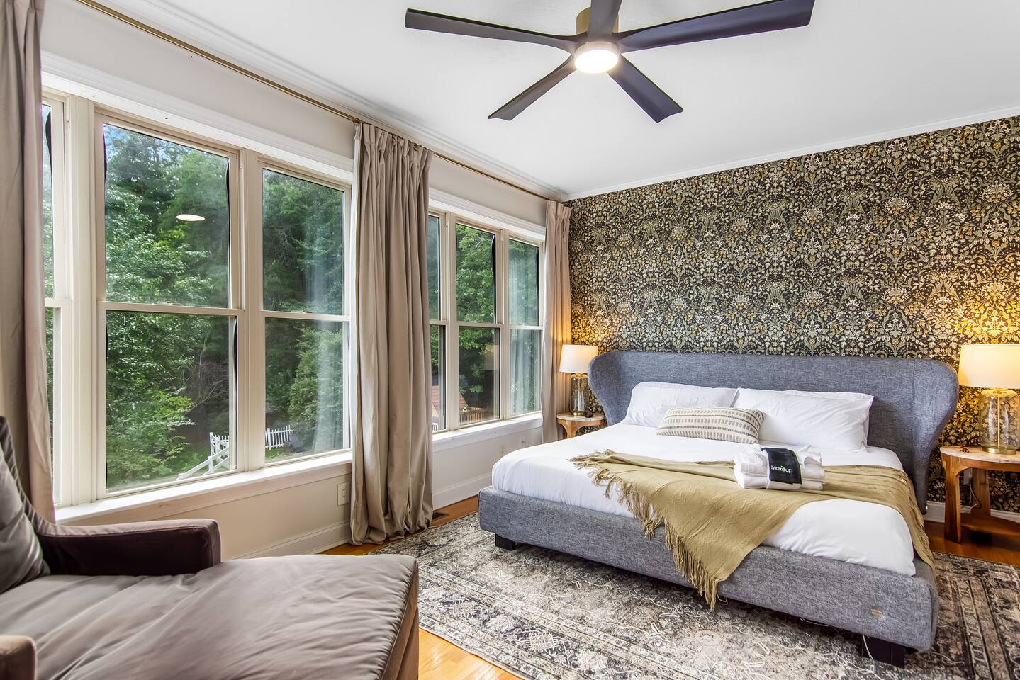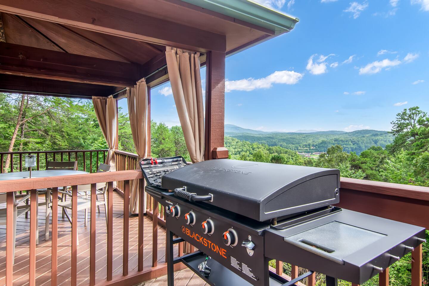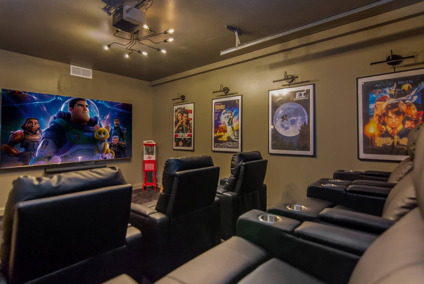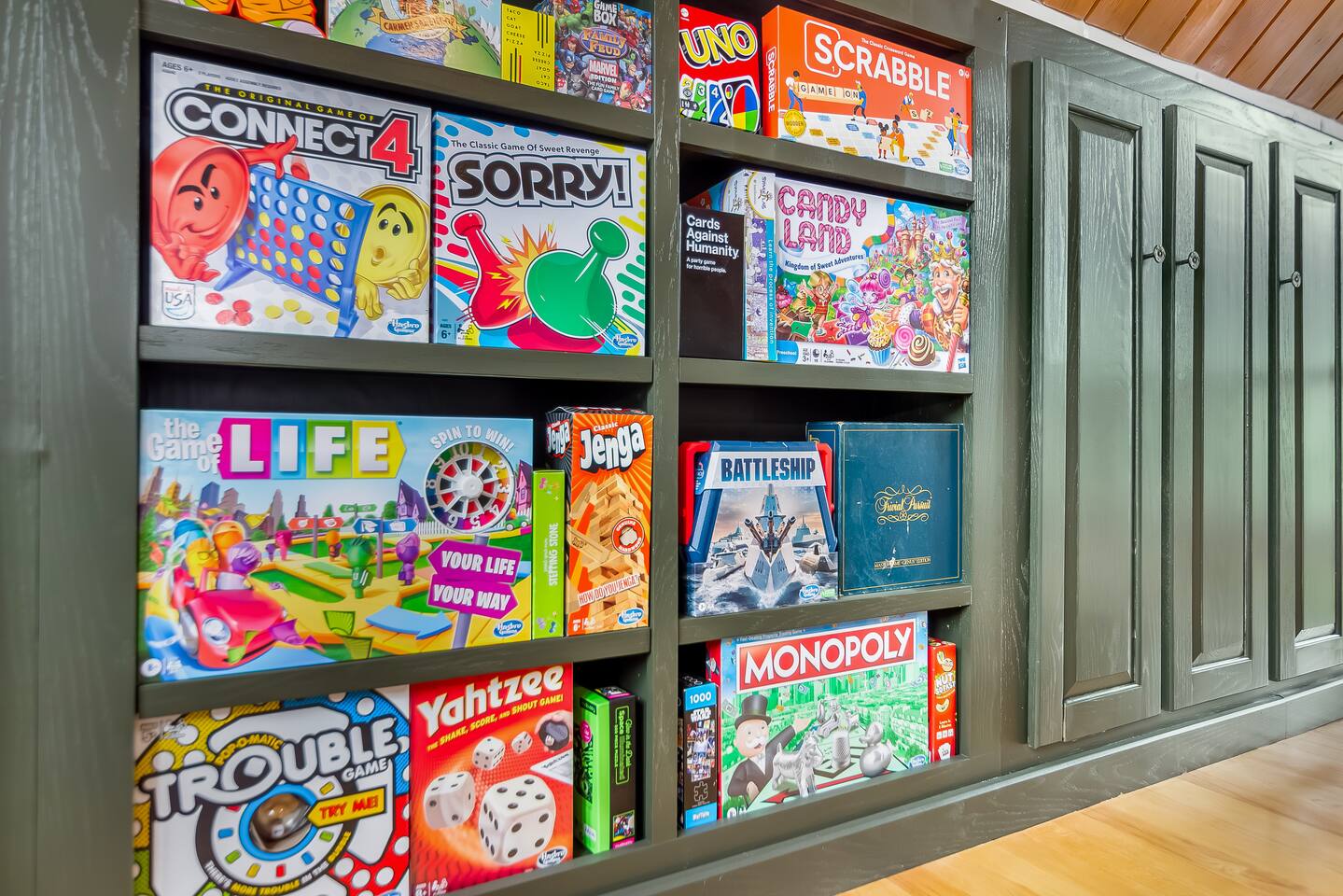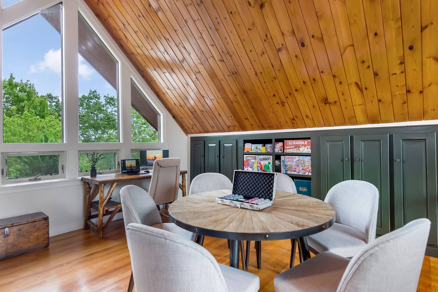 OUTDOOR FUN ZONE Enjoy the finest outdoor living the Blue Ridge Mountains have to offer. ✹ 6-person barrel sauna with panoramic mountain views ✹ 6-person hot tub with programmable LED lights ✹ Premier wooden kids' playground with two slides, a climbing wall, swings, and a lookout tower ✹ Fire pit with 5 Adirondack chairs (firewood provided) ✹ Bed swing ✹ Cornhole ✹ Bocce ball ✹ Badminton ✹ Pickleball court GAME ROOM Hands-down our favorite room with enough fun to keep the entire family entertained for hours! ✹ Pool table ✹ Foosball ✹ Air hockey ✹ Skee ball ✹ Shuffleboard ✹ Two LED-lighting dartboards and scorecard ✹ Street Fighter arcade game ✹ 14-foot live-edge bar and barstool seating for spectators ✹ Two 58" smart TVs MOVIE THEATER ✹ 100" smart TV with surround sound system ✹ Six leather reclining movie theater chairs with cupholders ✹ Two Big Joe bean bag seats ✹ Vintage popcorn machine KIDS GAMING ROOM ✹ Pac-Man arcade game ✹ Golden Tee arcade game ✹ 65" smart TV ✹ Nintendo Switch docking station + 4 controllers ✹ Mitchell Gold Velvet queen-size sleeper sofa ✹ Natural stone gas fireplace LIVING ROOM Enjoy the mountain vibes in this warm living room with views of the mountains and city of Helen. ✹ 65" smart TV ✹ Sling TV with 190 channels ✹ Natural stone gas fireplace ✹ Physical guidebook with local recommendations ✹ Expansive vaulted wood ceiling ✹ Modern mountain decor KITCHEN + DINING This cozy kitchen is fully stocked with everything you’ll need to cook delicious gourmet meals. ✹ Full-size fridge/freezer, dishwasher, 4-burner stove, oven, microwave ✹ Keurig dual coffee machine with both K-cup pods and ground coffee to brew a cup and a carafe of your favorite varieties ✹ Full set of kitchen cooking essentials ✹ Fully-stocked pantry with salt, pepper, spices, and dry goods ✹ Welcome basket with s'mores kit and fire starter ✹ Modern rustic 12-person dining table BEDROOMS 7 bedrooms all equipped with high-end linens, modern furnishings, and comfortable mattresses to ensure that well-deserved rest and relaxation. ✹ Upstairs bedroom 1: king bed, 43” Roku smart TV, private balcony, incredible views of Mt Jonah and the city of Helen ✹ Upstairs bedroom 2: full-over-full custom-built bunk bed, 50” Roku smart TV, two closets, kids' gaming table, leather convertible sofa ✹ Main level bedroom 1: king bed, 50” Roku smart TV, large closet ✹ Main level bedroom 2: king bed, ensuite bath, 50” Roku smart TV, spacious closet ✹ Main level bedroom 3: king bed, 58” Roku smart TV, panormamic mountain view ✹ Lower level bedroom 1: king bed, 43” Roku smart TV, mountain view ✹ Lower level bedroom 2: 3 custom-built bunk beds, small closet, bookcase with a variety of kids books BATHROOMS 4 full bathrooms all with a tub for the little ones. ✹ High-quality linens ✹ Quality shampoo, conditioner, and body wash ✹ Double vanity in 3 of 4 ✹ Two include a jacuzzi tub with bath bombs and epsom salts ✹ Bidet ✹ Hair dryers KITCHENETTE ✹ Full-size fridge/freezer, 4-burner stove, dishwasher ✹ Stocked with dinnerware and glassware LOFT ✹ Designated work area with desk, chair, and second monitor ✹ Kids' gaming/puzzle table ✹ Large assortment of board games and puzzles ✹ Giant Connect 4 ✹ Poker table and chip set ✹ Queen-size velvet sleeper sofa bed ✹ Soaring vaulted wood ceiling with panoramic mountain views and the city of Helen WRAP-AROUND DECK Savor THE best panoramic views of the mountains and the city of Helen. ✹ Outdoor couch, chairs, and coffee table ✹ Cafe string lights ✹ Gas Blackstone BBQ grill ✹ Cozy outdoor gathering space with an 8-person dining table and curtains ✹ Three fans ✹ Yoga mats OTHER AMENITIES ✹ Access to Unicoi State Park hiking trails ✹ High-speed WiFi throughout the home ✹ Laundry room with washer + dryer ✹ Iron and ironing board ✹ Two kids' high chairs ✹ Pack 'n Play ✹ Exterior cameras for security ACTIVITIES / ATTRACTIONS ✹ Innsbruck Golf Course 0.4 mi ✹ Helen Waterpark 1.3 mi ✹ Chattahoochee River Tubing 1.4 mi ✹ Unicoi State Park 1.6 mi ✹ Downtown Helen 1.9 mi ✹ Habersham Winery 1.9 mi ✹ Georgia Mountain Coaster 2.0 mi ✹ Helen Fun Factory 2.6 mi ✹ Uhuburg Castle 3.3 mi ✹ Cool River Adventures Ziplines, Aerial Course & Climbing Wall 3.7 mi ✹ Anna Ruby Falls 5.3 mi ✹ Dukes Creek Falls 7.6 mi